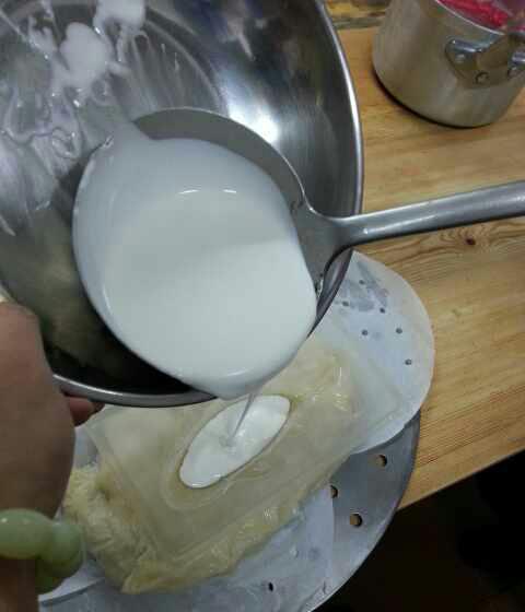 5蒸好之后在次倒入白色粉浆,在蒸10分钟。