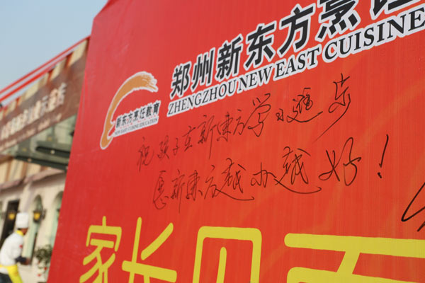 随后,学校教务负责人许立左、学区负责人宋军分别就我校教务、教学等几个方面,向家长们阐述、讲解了郑州新东方的基本情况、办学理念以及学生创就业的规划和安排。并请家长们放心,郑州新东方烹饪学校将会始终贯彻“办中国的职业教育”这一目标,对学生负责、让家长放心、让社会满意的办学思想,努力让每一位学生都能成功成才,实现自己心中的梦想。
