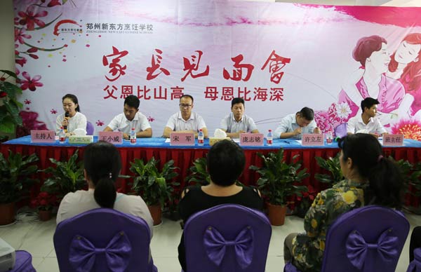 学生代表也上台进行了发言,向在座的父母们描述了他们在郑州新东方学习和生活的状况,以及他们的梦想和实现梦想的决心。家长代表也进行了精彩的发言,并代表在座的家长表示了对郑州新东方的感激,感谢学校对孩子们的培养,感谢新东方老师们对学生认真负责的教育。