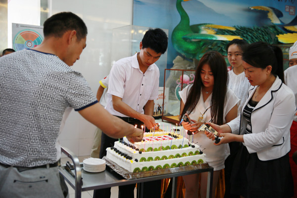 为了迎接学生家长们的到来,学校特意为他们准备了多层蛋糕。班主任老师和家长一起点燃了蛋糕上代表着希望和美好的蜡烛,学生们对着父母和蛋糕,许下了自己的心愿。随后,大家共同分享了这美味的蛋糕。