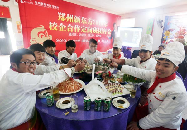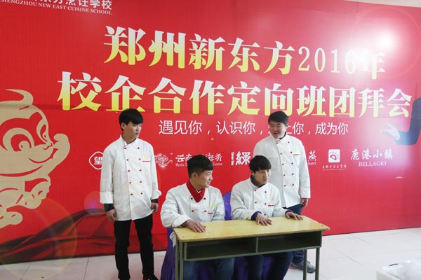 据悉,校企合作定向班的就业模式在郑州新东方已经开展了十期,通过校企合作定向班,无数郑州新东方学子走上了理想的就业岗位,也为企业输送了大批优质烹饪人才,填补了企业的人才空缺。此次校企定向班新春团拜会,成功的拉近了学校、企业和参加定向班的学子们的距离。制作宴席期间,企业领导和学子们共同努力,互帮互助,真正体验到了什么叫合作的力量。希望上海宝燕校企定向班的学生能早日成功成才,成为郑州新东方烹饪学校的骄傲。