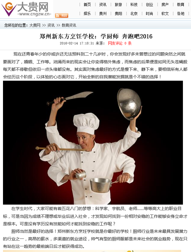 在郑州新东方烹饪学校,完善的教学设备、雄厚的师资队伍以及专业的就业服务,能让你在2016年以更快的速度奔跑!