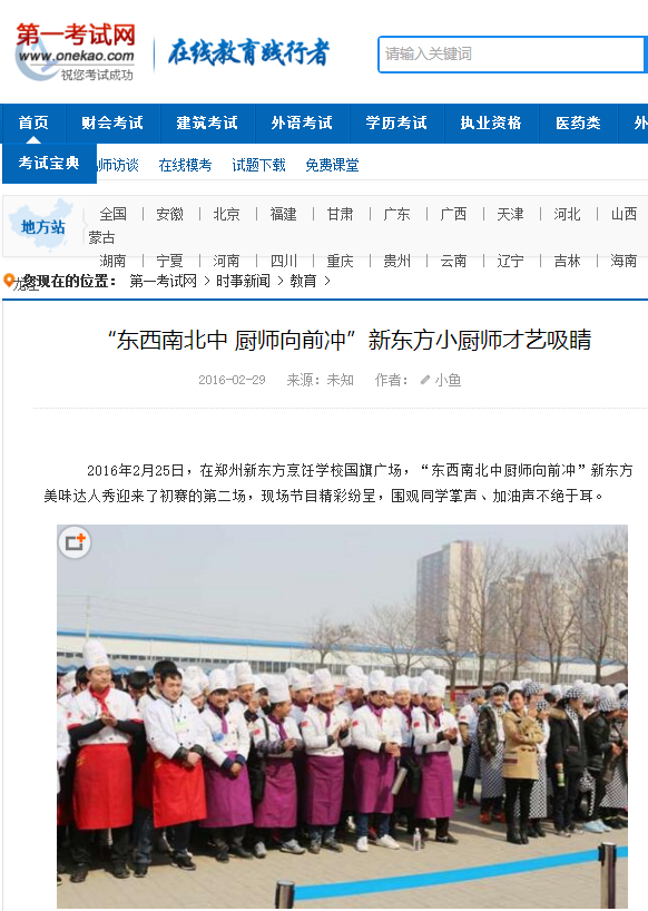 2016年2月25日,在郑州新东方烹饪学校国旗广场,“东西南北中 厨师向前冲”新东方美味达人秀迎来了初赛的第二场,现场节目精彩纷呈,围观同学掌声、加油声不绝于耳。