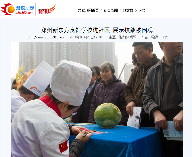 近日,郑州管城区一社区的居民迎来了几位特殊的客人——郑州新东方烹饪学校的几教师生,他们一亮相,就吸引住了居民们的眼光。他们向社区居民展示了新东方师生高超的雕刻、面塑等技能,赢得社区居民阵阵赞叹。