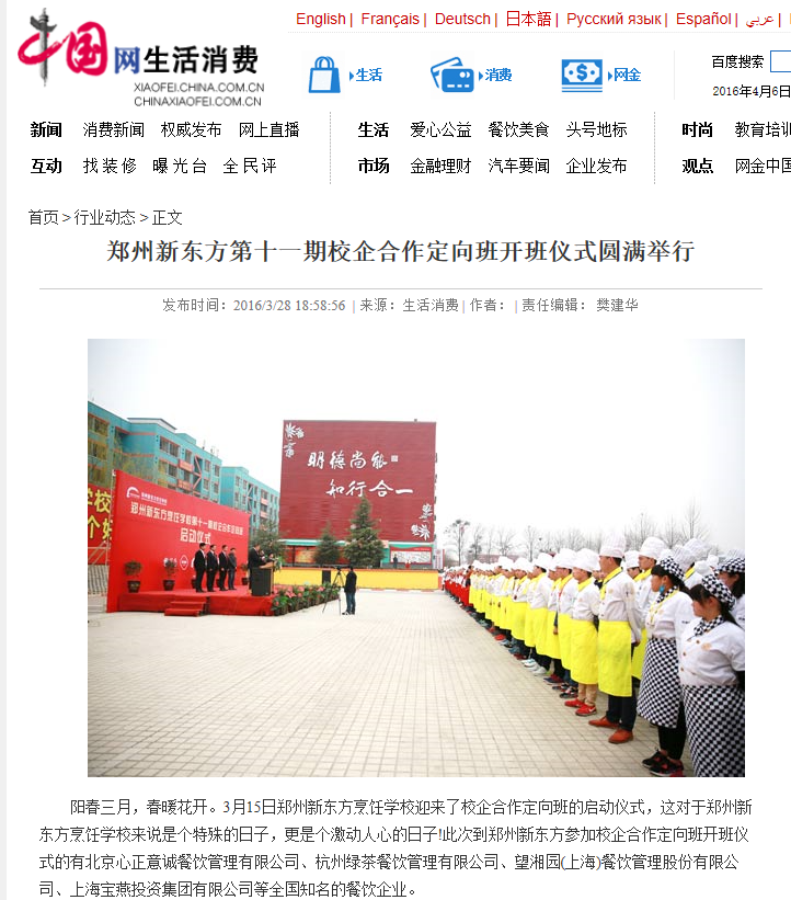 阳春三月,春暖花开。3月15日郑州新东方烹饪学校迎来了校企合作定向班的启动仪式,这对于郑州新东方烹饪学校来说是个特殊的日子,更是个激动人心的日子!此次到郑州新东方参加校企合作定向班开班仪式的有北京心正意诚餐饮管理有限公司、杭州绿茶餐饮管理有限公司、望湘园(上海)餐饮管理股份有限公司、上海宝燕投资集团有限公司等全国众所周知的的餐饮企业。
