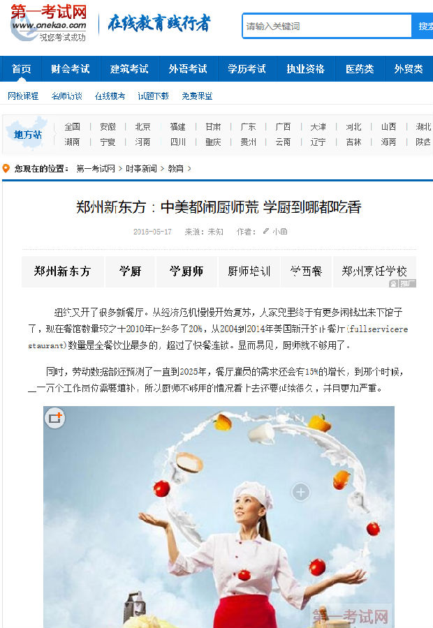 除了在招工网站上刷屏,餐厅的触角要伸的更远——除了分类信息网站,餐厅开始往少数族裔的出版物上面张贴招聘启事。而且他们对教育界更是步步紧逼,除了更深入地参与烹饪学校的课程中,比如在郑州新东方烹饪学校,用人单位早早就开始在学校开设校企合作定向班,还派遣酒店大厨定期到学校培训定向班学生,以便于他们在毕业进入企业后能更快上手,如果你还在考虑要学一门热门技能,学厨师是个不错的选择!