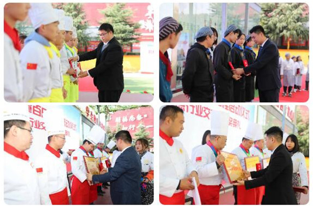 接下来,学校领导为“军优杯”教师·名菜·名点行业交流赛的获奖选手们颁奖。