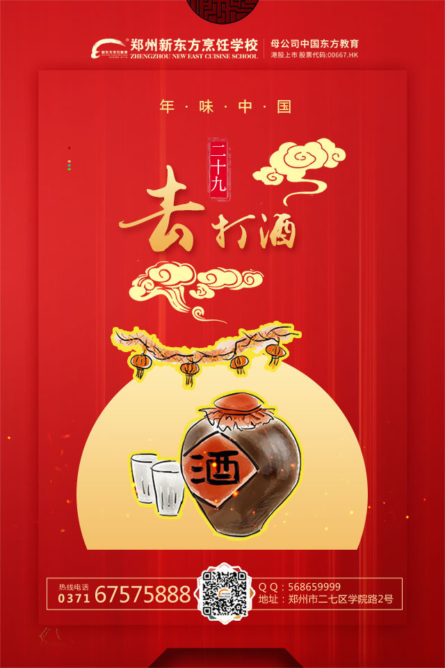 腊月二十九,除夕前一日,俗称“小除夕”,是汉族春节传统节日之一。民谣称:”二十九,去打酒“,就是去买酒的意思。在过去的农业社会时代,卖酒的酒家都是把酒盛在坛子里,可以零买。打酒就是要准备祭祀和招待客人用。另外,古人饮酒与现在人们饮酒时先敬尊者、长者的习俗不同,他们是让年龄最小的人先饮,然后才是长者。为什么会这样呢?年纪小的孩子,过年了就长一岁,值得庆贺;而老年人过年了意味着老了一岁,不值得庆贺,所以排到最后喝。对于成人来说,在新年大餐中酒是必不可少的一部分,只是记得酒要尽兴,也要适度。