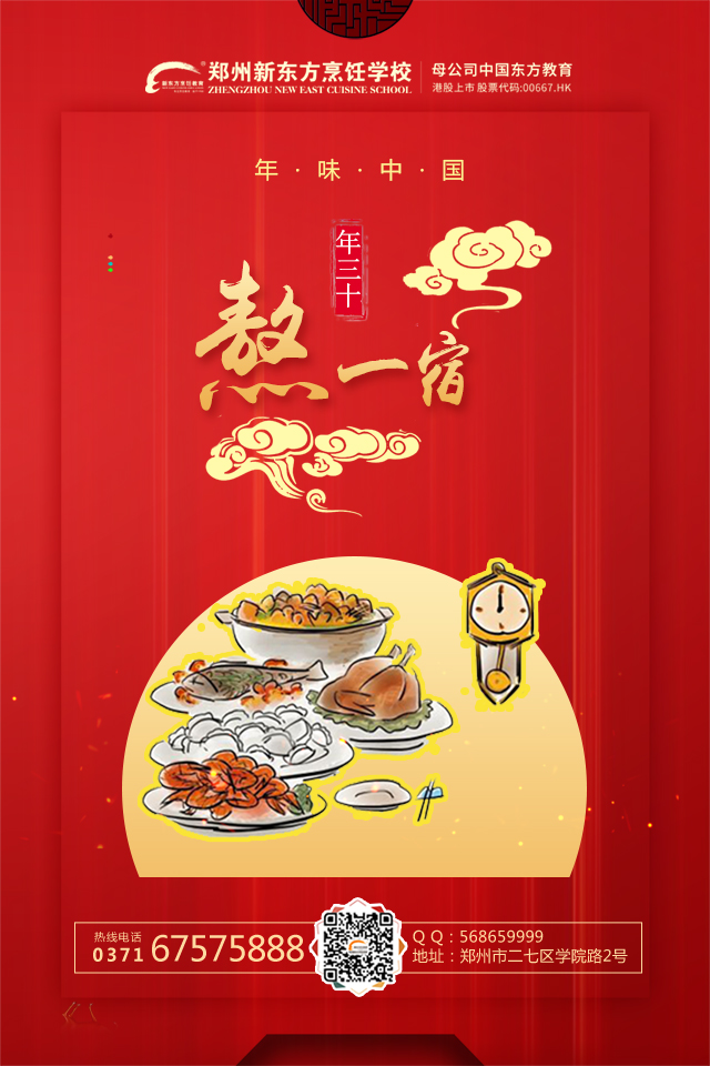 好了,关于熬年的传说在这里就和大家聊这么多了,在这普天同庆的大好时节,郑州新东方烹饪学校提前祝您和您的家人新春大吉,万事如意!
