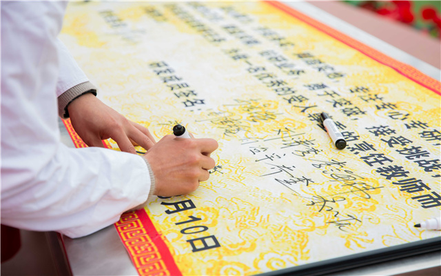 我校领导与李主管及教学研发团队签订教学研发军令状,“团结务实,开拓奉献。我将克服一切困难,在2021年不负厚望,认真落实各项研发任务,教研团队心在一起,精益求精。”即使是短短的两句话,却句句振奋人心,让在座的教务老师无不精神抖擞信心满满,相信在教研小组的带领下,我校的教研工作一定会更上一层楼。