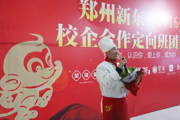 2016年1月7日,在郑州新东方烹饪学校校企定向班新春团拜会迎来了上海宝燕投资集团有限公司的代表,宝燕的厨务总监董总、潘总厨、侯总厨等宝燕的一席领导来到了郑州新东方。