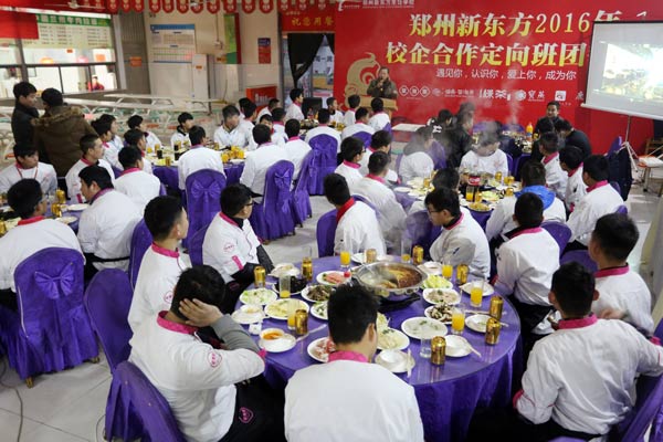 2016年1月6日,在郑州新东方烹饪学校,望湘园定向班的团拜会也拉开了帷幕。团拜会的现场很是热闹,郑州新东方烹饪学校副校长李超,创就业指导中心庞主任、望湘园人力资源总监吴总、望湘园培训张主管等一席领导出席了团拜会。