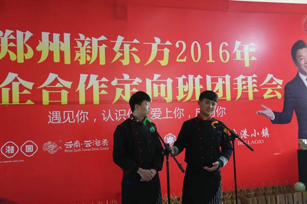 通过这次由郑州新东方烹饪学校牵线搭桥的团拜会,成功的拉近了企业和参加定向班学子们的距离,让企业更加了解了定向班学生们的实力,也让学生更加感受到企业的关怀,团拜会以后还会延续下去,给校企合作的就业模式增加一个亮点,希望鹿港小镇定向班的学生也能通过团拜会,收获满满,为他们来年进入企业打下基础。
