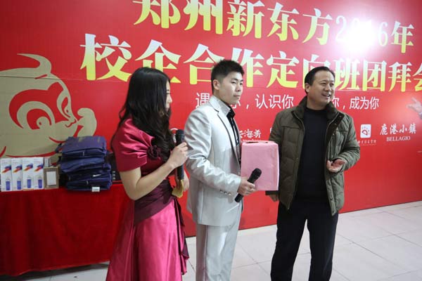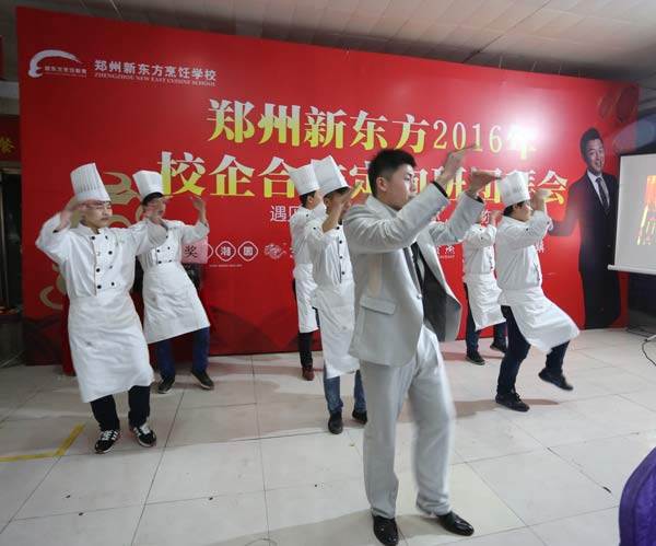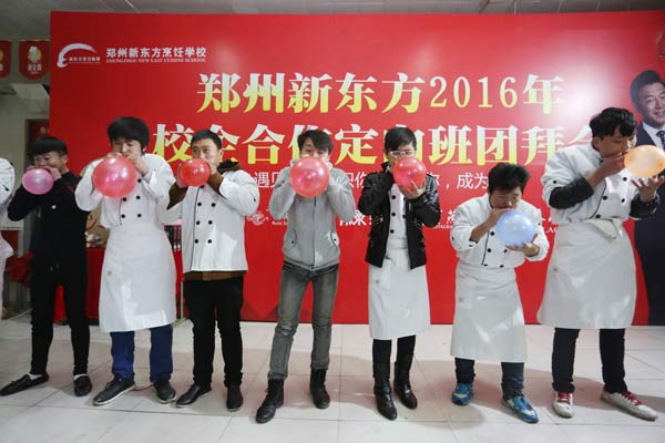 2016年1月7日,阳光明媚,杭州绿茶餐饮管理有限公司全国人力资源部吕锋锐吕总和吴总厨一大早就来到郑州新东方烹饪学校,为郑州新东方绿茶定向班的学子召开了他们渴望已久的团拜会,大家齐心协力布置会场,制作菜肴,一起度过了难忘的一天。