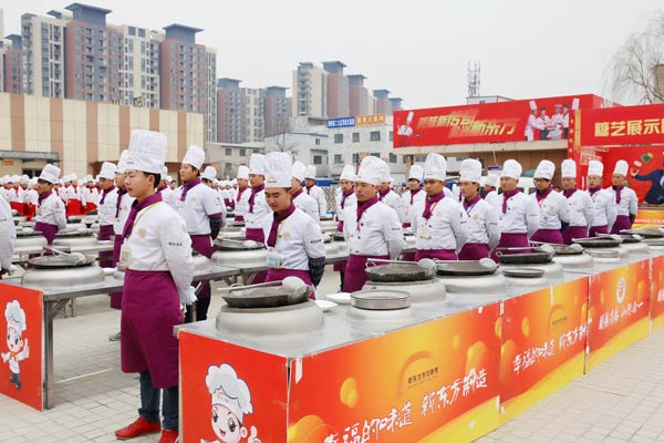 2016年2月21日,在郑州新东方烹饪学校前广场上,“寻找超级厨师第三季”烹饪擂台赛之击鼓翻锅争霸赛初赛正在如火如荼地进行,学校二十余个班级参加到此次初赛的比赛中,作为初赛的第二场,此次参赛选手气势升级,充分展示了他们的精神面貌和必胜的决心。