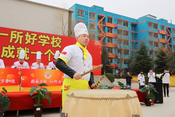由于熟悉了赛制,各班级早早就集结了参者队伍,整理地列队等待上场一展风采。随着主持人开始一声令下,队参赛选手雄赳赳气昂昂进入比赛场地,只见他们动作整齐划一,步伐铿锵有力,跟随着打鼓的节奏,分别翻出:小翻、大翻、旋翻、调味、装盘等一系列动作,大家动作协调一致,口号高亢嘹亮,精神抖擞,充分展示了郑州新东方学子风采。