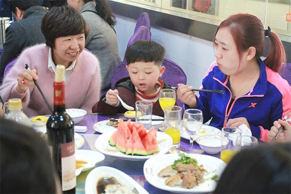 品尝宴席过程中,大家对新东方学生们的手艺也是赞不绝口,看到大家吃得这么开心,听到不绝于耳的赞赏声,即使辛苦,制作宴席的同学们也甜在心里,没有什么比对他们的肯定更让他们觉得骄傲了!