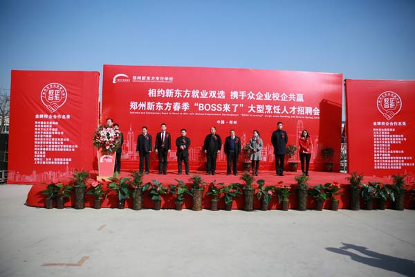 阳春三月万物新,紫气东来迎嘉宾。在这春暖花开,万物更新的时节,郑州新东方烹饪学校迎来了2016年春季“BOSS来了” 大型烹饪人才招聘会。郑州市人力资源和社会保障局的领导、郑州新东方烹饪学校的领导以及50余家新东方校企合作企业的代表参加了此次招聘会的开幕式。