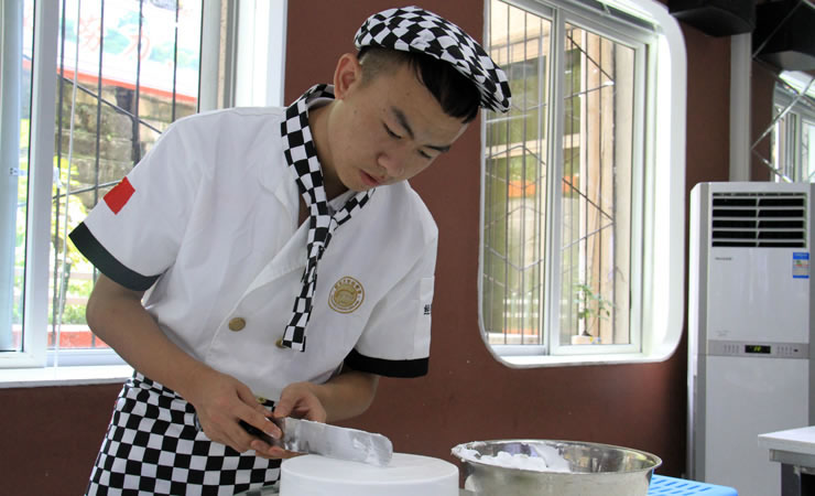 虽然入学的时间还不长,但老师却对吴江龙有着深刻的印象,在老师眼里他是一位特别有想法,特别能吃苦孩子。虽然学习西点的时间不长,但却在短时间内练成了扎实的基本功,还参加了学校的艺术裱花蛋糕设计大赛,这让老师感到特别欣慰。