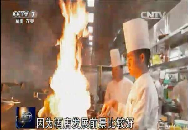 央视记者采访了在五星级酒店后厨工作的刘华伟,了解到他在高考失利后,决定跟随自己的兴趣爱好选择学习一门技术,通过在郑州新东方烹饪学校学习,毕业后进入学校校企合作单位工作,拥有一门技能的他对自己的工作现状和收入都很满意。