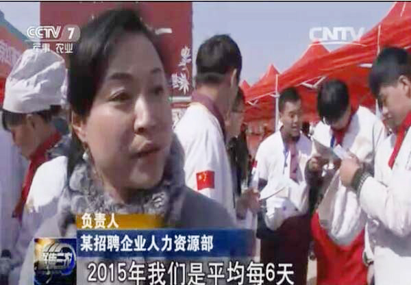 央视记者在郑州新东方烹饪学校组织的一场大型春季招聘会上了解到,此次招聘会前来招聘的企业多达80余家,通过采访现场招聘的餐饮企业,记者了解了餐饮企业发展迅速,人才需求量也很大。企业到学校招聘,证明企业有强烈的招贤纳士的愿望,但是央视记者也发现郑州新东方即将毕业的学生似乎并不着急,一位新东方学生表示:“以前没有技能是别人选择你,但是现在有技能以自己为主去选择。”