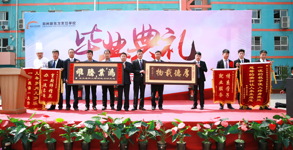 2016年4月22日,在郑州新东方烹饪学校国旗广场,郑州新东方烹饪学校2016年春季毕业欢送会拉开序幕,此次欢送会以 “饮水思源 勿忘师恩 勿忘校训”为主题,郑州新东方烹饪学校领导和校企合作企业代表应邀出席了此次毕业欢送会,大厨专业1405班和1406班,中餐主厨专业1409班、1410班、1411班和1412等班级毕业生参与到此次欢送会中,共同挥别母校。