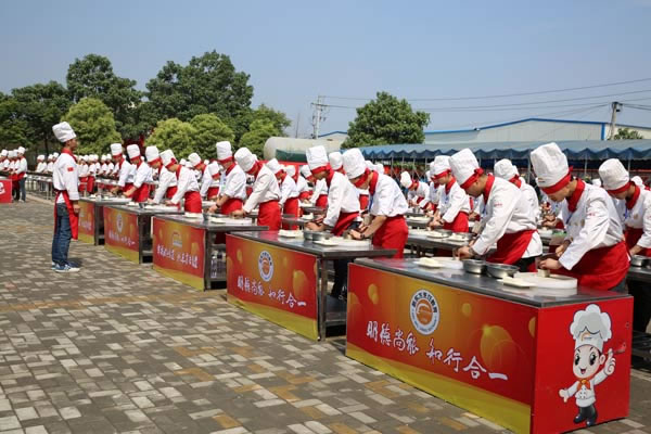 活动开始前,新东方美女老师带领大家参观了郑州新东方烹饪学校,整个校园非常整洁,不同于其他学校的是这里的教室个个都有灶台和锅,旁边还摆放着各样的厨具和调料,像一个美食工作室,教室里是忙碌着制作菜品的学生们,老师在一旁认真指点学生。大家还一起观看了新东方学生集体展示蒙眼刀工的绝技,对他们精湛的刀工表演瞠目结舌。