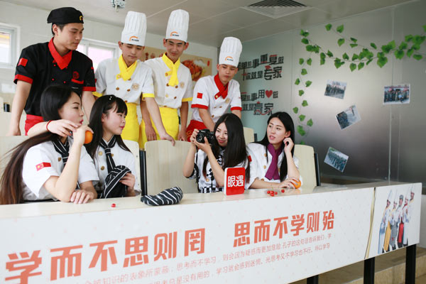 所有的场景都深深吸引着拍客,他们争分夺秒地用镜头记录着他们看到的一切。欧米奇创业示范店、模拟酒店、小花园、林荫小道……都留下了他们的足迹。新东方的魅力,厨师们的风采,舌尖上的美味,无一不给他们留下了深刻的印象。