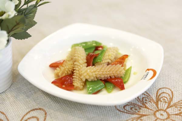 考试题目公布后,小厨师们领到自己所做菜肴的食材,便依次进入考试场地,开始了菜肴的制作。只见他们处理食材、热油,倒入原料,翻炒,加调料,起锅……一连串娴熟的工序过后,一盘盘冒着热气、香味扑鼻的菜肴端上了展示台,让人垂涎欲滴。