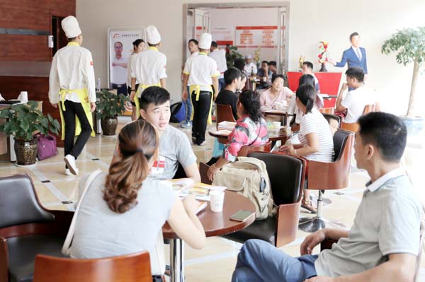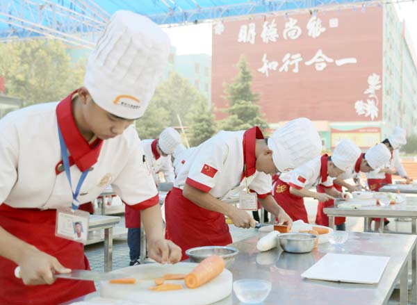 9月4日,记者在郑州新东方烹饪学校咨询中心看到,前来咨询、报名的家长和学生们络绎不绝,咨询大厅里呈现出一派繁忙景象。在参观完校园后,正在前广场进行刀工练习的一个班级的学生吸引了咨询、报名家长的注意,只见他们在哨子的指挥下,对面前的食材进行加工,他们的刀工十分精湛,切出的作品让人忍不住为他们点赞。