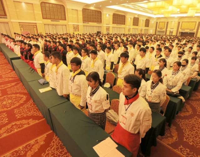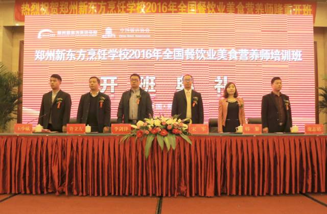 随着国歌的奏响,典礼现场全体人员起立,郑州新东方烹饪学校2016年全国餐饮业美食营养师培训班正式拉开帷幕。