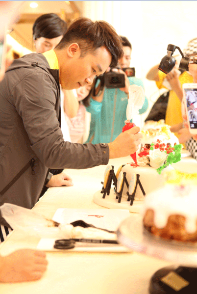 图:卢正雨在《绝世高手》翻糖蛋糕上签名