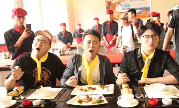 图:电影主创团队在铁板烧教室品尝特色牛排后直呼太好吃