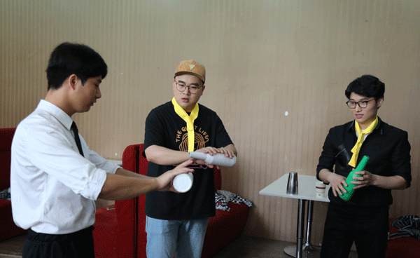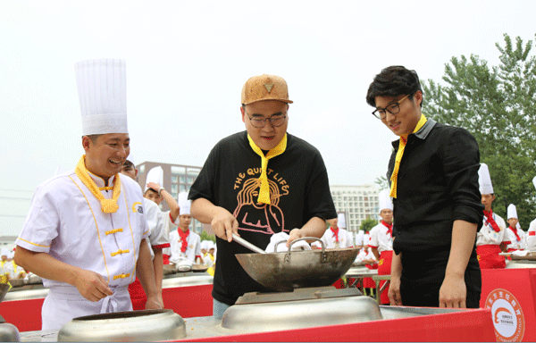 下午14时50分,在新东方学生热情的欢呼声中,导演卢正雨、演员孔连顺、柯达走进了美丽的校园。道路两侧许多卢导的铁粉拿着手举牌求合影,并通过祝福口号愿《绝世高手》大卖取得票房好成绩。在校园中央,激扬有力的鼓声,整齐划一的翻锅节奏乐吸引了电影主创团队的眼球,原来这是新东方学生在用自己独特的方式欢迎远道而来的客人。在美食的江湖,学好厨师,首重基本功,三位主演亲自上手,体验了一把“击鼓翻锅”。