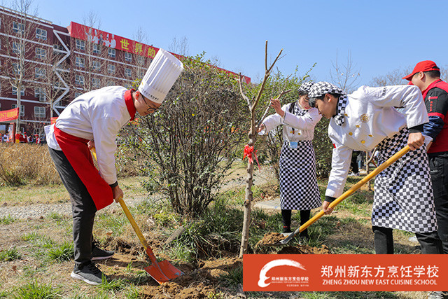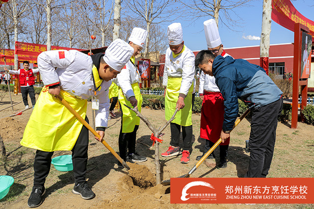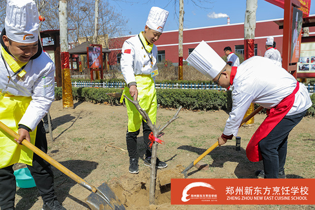 据悉,郑州新东方烹饪学校今年的植树节是每个班级的学生自发组织在学校的小花园里种下一棵代表班级的树,共计60余株。