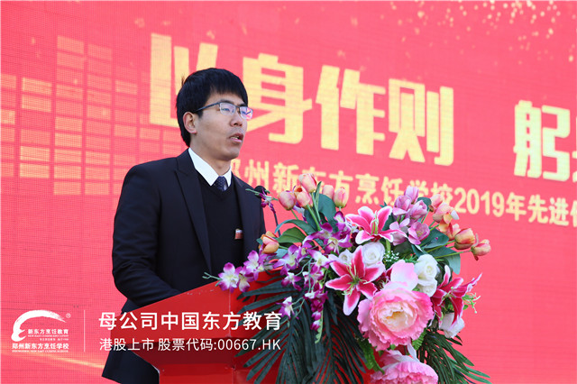在庄严肃穆的国歌声中,我校2019年班级完善代表表彰大会拉开帷幕。我校中餐专业学工处李主任为本次活动致辞!李主任表示,本次表彰大会为了表彰优秀学员,树立积极榜样,鼓励各位班干继续发挥带头作用,将班级建设和自身学习统一起来,更好更热情地为各位同学服务;也希望全体同学共同努力,向优秀看齐,向榜样学习!