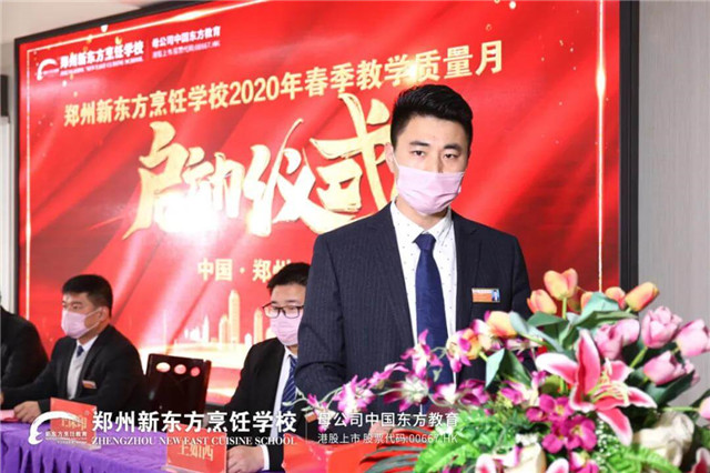 首先,教务王主任发表讲话。他表示,郑州新东方烹饪学校自成立以来一直高度重视教学管理工作,我们也不断地解放思想,积极进取,不断推进教学质量的提升工作。教学质量是立校之本,也是我们培养厨师精英的基础,因此,我们要做到从思想上重视,从实际工作中落实。教学质量百日工程是全校师生共同参与的一项大工程,我也相信通过教学质量百日工程的开展能够让我们学校的发展更上一层楼。