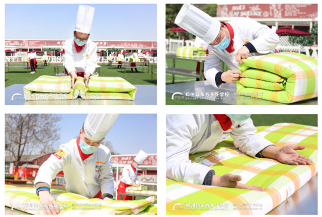 知行合一是学校的教育理念,内务管理是自我管理很重要的一部分,教会同学们叠出漂亮的军被也能诠释新东方学生的精神面貌。