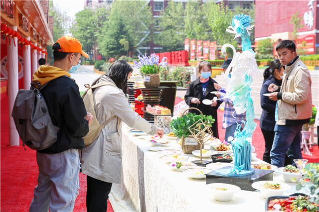 现场热闹非凡,放眼望去,菜品展示区上的各式美味已经上齐了,精致的菜肴让人眼前一亮,麻辣烤鱼、肉夹馍、包子、油条、羊肉串、烤翅、芝士蛋糕、马卡龙、草莓布丁……一个个可爱又诱人的模样仿佛都在说:“吃我!吃我!”有的咨询者评价道:“那烤串实在太美味了,肉质鲜美,外焦里嫩,那油亮光泽的外表很能勾起人的食欲,吃不腻,吃不腻!”有的咨询者说:“教师做的美食就是不一样啊,这些美食我都吃遍了,真好吃!”