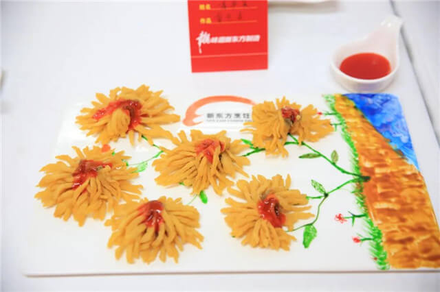 本次比赛要求各位参赛老师在规定的时间内完成作品考核,赛场上高手云集,各位中餐教师,纷纷拿出自己的绝活,一决高下!各位参赛教师镇定自若,游刃有余,他们利用生活中常用的食材经过创新的烹饪方式,将作品展现给大家,让我们一起去看看参赛老师们的作品吧。