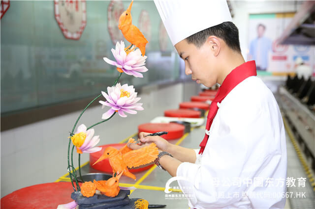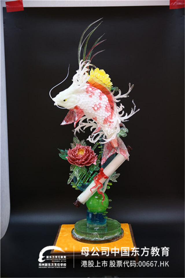 只见参赛的雕刻老师用一把刻刀“画”美景,有条不紊地进行着作品的雕刻和设计,用心将果蔬一点一点雕刻成形,片片花瓣,根根羽毛,雕龙刻凤,入木三分,仿佛皆被赋予灵动的生命力,栩栩如生,让人不禁感叹,雕刻老师真是太牛掰了!