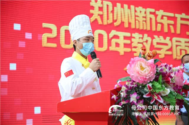 我校学生代表金领大厨专业1815班毕明瑞同学上台发言。他坚信选择郑州新东方烹饪学校没有错,相信通过在校认真努力学习,一定会取得优异的成绩,创造出精彩的未来。