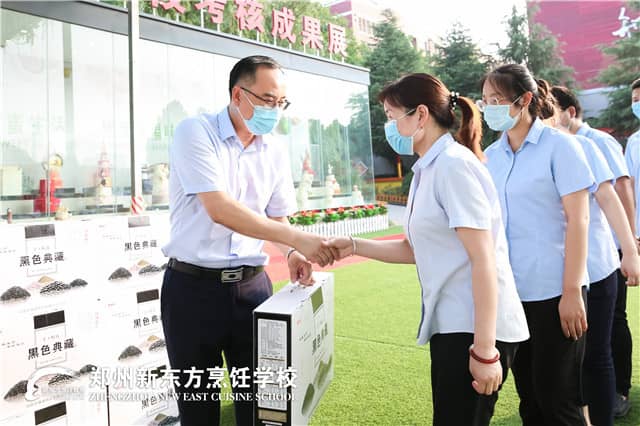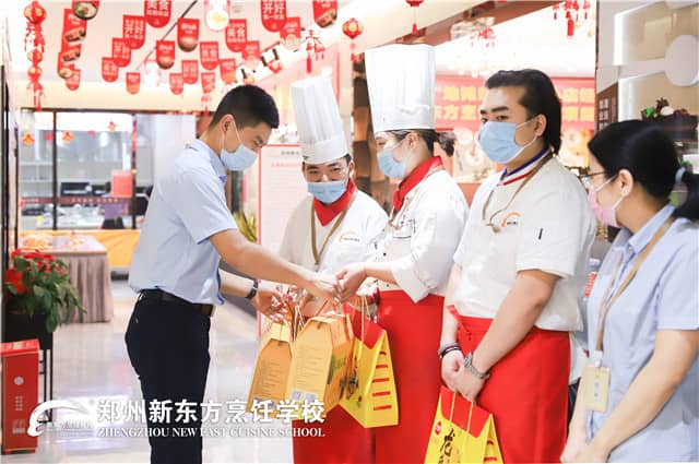 最后就到了我们的大合影的环节啦!全体教职员工,佩戴口罩,手提礼品,尽情展现郑州新东方烹饪学校的温暖与激情,喊出“幸福味道,新东方制造”的口号,让每一位在场的老师无不为自己身处新华集团、身处郑州新东方而感到骄傲与自豪!