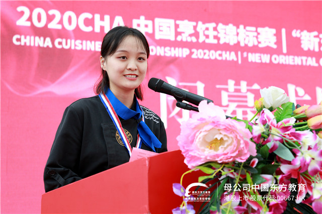 她非常感谢郑州新东方烹饪学校为他们提供这样一次难得的学习交流的机会,一个展示自我的舞台,他们一定会更加努力学习技能,必定不负学校、老师以及家长的期望!