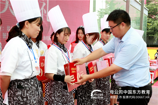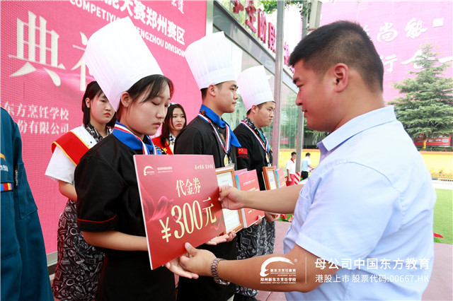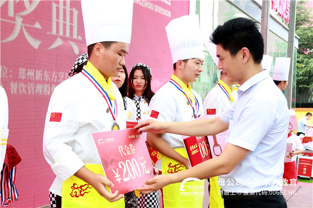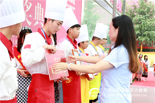 郑州新东方烹饪学校校长助理章助理为一等奖获得者颁奖!
