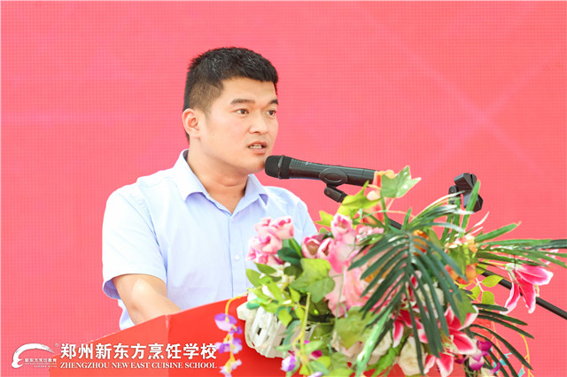 我校教务处王主任表示今天的开班典礼,对于各位新同学来说是一个新的开始,希望大家在新东方这个大家庭中奋勇拼搏;同时,他还针对我国目前餐饮行业的发展前景进行了分析,希望同学们对餐饮行业有一个更清晰的认知,也希望同学们对接下来的学习有更明确的目标!