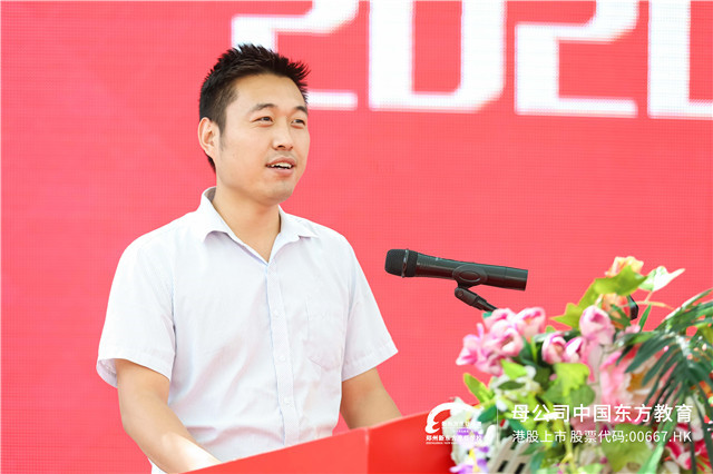 最后,我校校区鲁主任发表讲话,鼓励各位新生要坚持、勤奋、自律,努力做更好的自己,体会自己父母的辛苦、老师的付出,知恩图报,衷心祝愿各位新生在新东方能够更好地学习,有更加美好的未来。